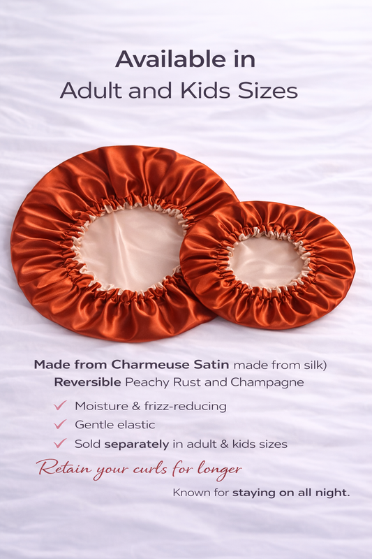 Our custom-made satin bonnets are available in women's and girl's sizes.